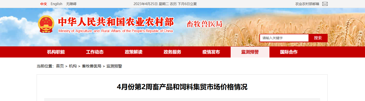 據(jù)對全國500個(gè)縣集貿(mào)市場和采集點(diǎn)的監(jiān)測,4月份第2周(采集日為4月12日),生豬產(chǎn)品、家禽產(chǎn)品、牛羊肉、飼料價(jià)格下跌,生鮮乳價(jià)格持平。生豬產(chǎn)品價(jià)格。全國仔豬平均價(jià)格36.89元/公斤,比前一周下跌1...