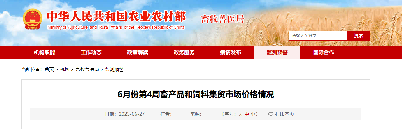 6月份第4周畜產(chǎn)品和飼料集貿(mào)市場價格情況...