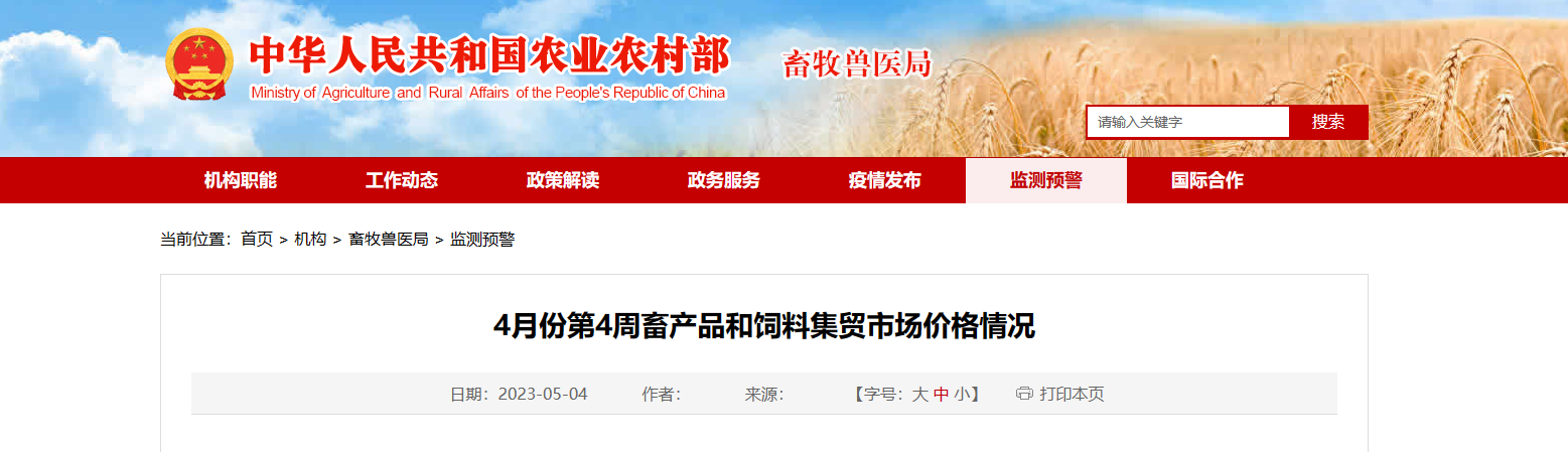 據(jù)對全國500個(gè)縣集貿(mào)市場和采集點(diǎn)的監(jiān)測,4月份第4周(采集日為4月26日)生豬產(chǎn)品價(jià)格上漲,雞蛋、雞肉商品代肉雛雞、牛肉、生鮮乳、豆粕、育肥豬配合飼料、肉雞配合...